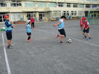 1時間目は、校庭で体育をしました。久しぶりにサッカー型のボール運動をしました。今日も4チームでの対抗戦を行い、キャプテンを中心に試合をすすめました。攻守ともに、よい動きができるようになりました。いよいよ、明日の体育の時間は、ボール運動のまとめとなる最後のチーム戦です。「明日も頑張るよ!」と子どもたちの声が聞こえてきました。