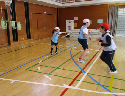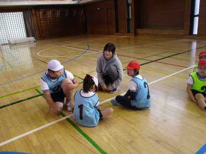 1時間目は、体育館で体育をしました。今日は、バスケット型ボール運動の学習のまとめ、最後のチーム対抗戦を行いました。試合前にチーム毎に作戦会議の時間を取り、攻守の動き方について話し合いました。作戦が功を奏したのか、21対22、31対30等の接戦が見られました。チームで協力して試合をすることをみんなが分かり、とてもよい動きができるようになりました。来週の「2学期がんばったねの会」の時間に、全試合を通しての結果発表を予定しています。「優勝は、どのチームかな?」子どもたちは、とても楽しみにしていました。