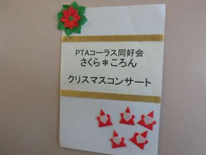 今日の中休みの時間、本校PTAコーラス同好会“さくら*ころん”のみなさんによる、子どもたち対象の「クリスマスミニコンサート」が第2音楽室で開かれました。