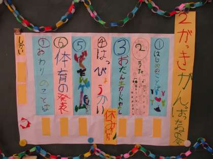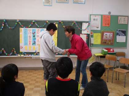 3・4時間目に「2学期がんばったねの会」をしました。プログラムにそって会を進行し、みんなで歌やゲームを楽しみました。今回は、国語の学習で取り組んだ物語文の音読を発表してくれたグループもありました。2学期生まれの友達に誕生カードを贈り、お祝いをしました。休憩をはさんでから、体育の「ボール運動」の結果発表と表彰式をしました。4つのチームに表彰状と金・銀・銅のメダル、そして頑張り賞の水色のメダルが授与され、子どもたちは、とても嬉しそうでした。みんなで頑張ったことを振り返り、楽しい時間を過ごすことができました。