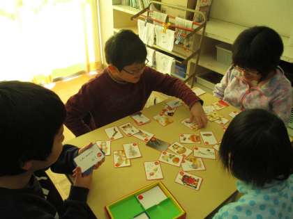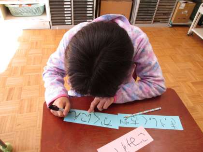 1時間目に体育館で始業式を行いました。そのあと、学習室に集まり、新年のあいさつを交わしてから、今週の予定をみんなで確認しました。3時間目の国語(書写)では、2人ずつ交代しながら、書き初めをしました。どの子もお手本の文字をよく見て、丁寧に書くことができました。書き初めを終えた子は、3学期の係活動の表示を作りました。冬休みを終えて久しぶりに顔を合わせた子どもたち、仲よくカルタを楽しむ様子も見られました。