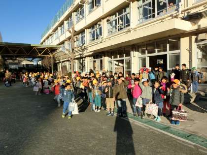 冬晴れの天候に恵まれ、子どもたちが元気に学校へ登校して来ました。