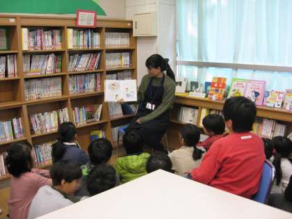 今日の図書の時間に図書館司書の水野さんによる読み聞かせを行いました。新しい図書が入ったそうで、子どもたちに人気のある「ふまんがあります」という本を読んでくださいました。みんな楽しそうに聞いていました。新しい図書は月曜日から借りられるそうです。「月曜日に早く図書室に行こう。」と、楽しみにしているようでした。