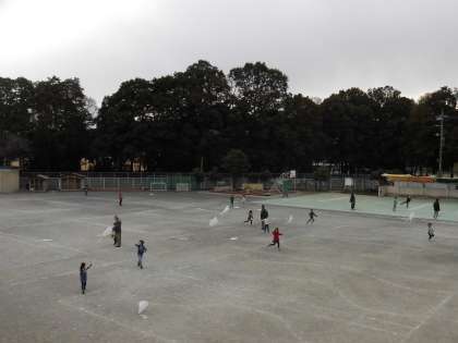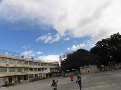 校庭いっぱいに、空高く凧が上がりました。