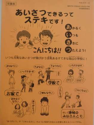 *上段の写真は、本校の学校運営委員会が作成した“いつも元気なあいさつが飛びかう活気のあるすてきな烏山小学校に!”との願いとPRを兼ねたポスター(チラシ)です。