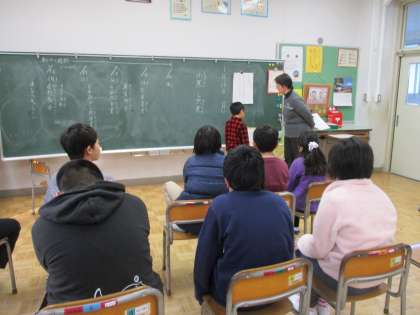 毎週月曜日の1時間目は、学習室に集合して、学級会をしています。まず、全校朝会で校長先生が、どんなお話をされていたかを確認します。次に、1週間の予定と週の生活目標を発表します。そのあとで、質問を受けたり、行事について話し合ったりします。さらに、学級から1人ずつ順番に、休みの日の日記発表もしています。「話を聞く・発表をする」そのための大事な1時間です。