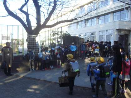正門では2年生、東門では4年生があいさつ運動に取り組みました。今日もPTAの方々、上祖師谷中学校の生徒のみなさんににご協力いただき、あいさつ運動を盛り上げていただきました。
