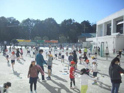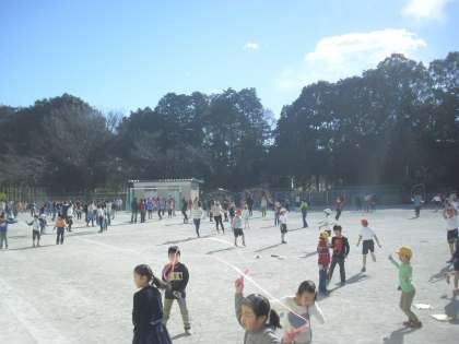 よく晴れた空の下、子どもたちは短縄跳びに取り組みました。昨日から始まった縄跳び旬間では「なわとびカード」をもとにして一人ひとりがめあてをもち、主体的に取り組んでいます。友達同士で教え合ったり、時には高学年が低学年に教えてあげたりと、子どもたちのかかわり合いも活発に行われています。