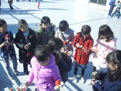 今日は1年生・2年生が「昔遊び会」を開きました。
