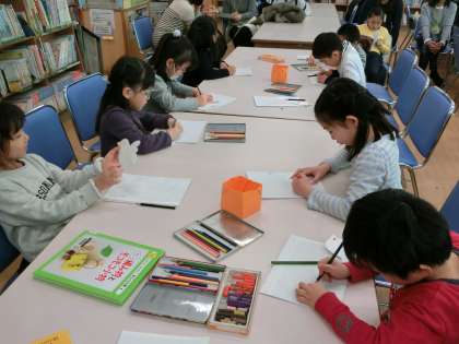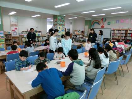 今日は、午前10時からの1時間の時間帯を「新1年生歓迎図書館イベント」として開催しました。朝からの天候にも恵まれ、4月に入学予定のたくさんのみなさんと保護者の方々が図書館に集まりました。