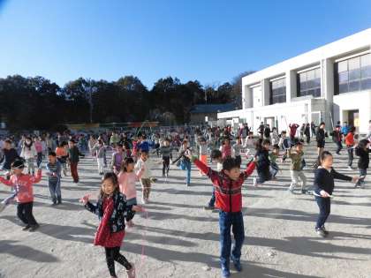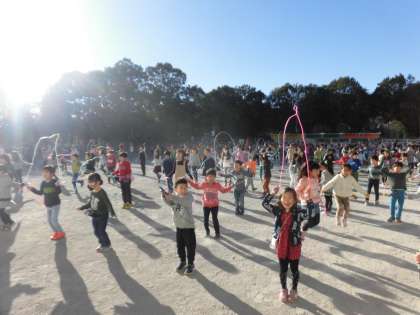 今日の児童集会は縄跳び集会でした。全校で音楽に合わせてリズムよく、いろいろな跳び方に挑戦しました。縄跳び旬間は4日(土)までですが、これからも元気よく体を動かしてほしいと思います。