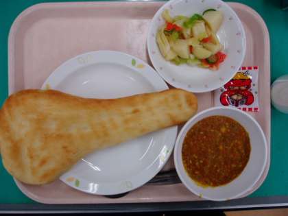 本日は2−3のふれあい給食です。2−3のみなさんのリクエストから、献立はナンカレーに決定しました。ナンはオーブンで焼いたので、パリッとした食感も楽しめます。2月3日は節分です。福豆だけではなく、カレーの中にもみじん切りの大豆が入っています。