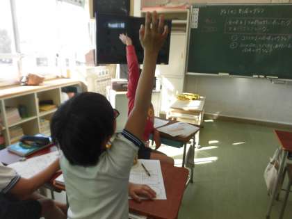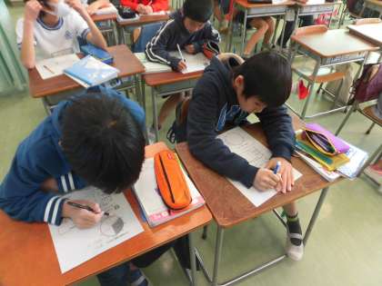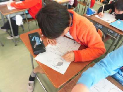 算数科では割合の求め方、百分率、歩合を学習しました。その答えを生かして帯グラフや円グラフを作る学習をしています。