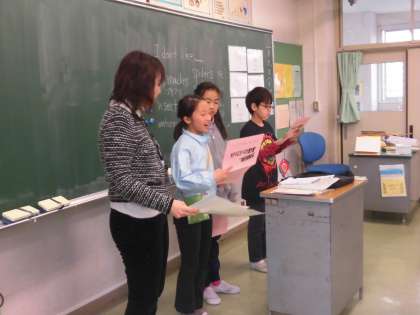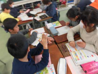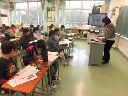外国語活動ではいつもスピーチの学習に取り組んでいます。今日は自分の好きなもの、嫌いなものを表現する英語を確認しました。また、グループで夢の時間割を考えて英語で発表しました。