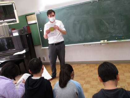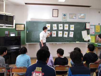 1時間目に英語活動がありました。今日は「食べ物」の名前を英語でどう表現するのかを講師の先生に教えていただきました。大好きな食べ物の絵カードを見ながら、みんなで大きな声で発音してみました。最後に「BINGO」のゲームをしながら、楽しく学習しました。
