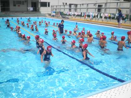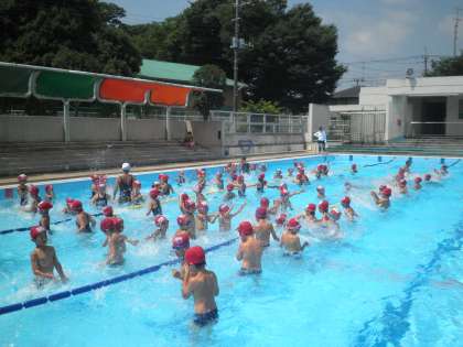 夏のプールは毎日たくさんの子どもたちが参加しています。