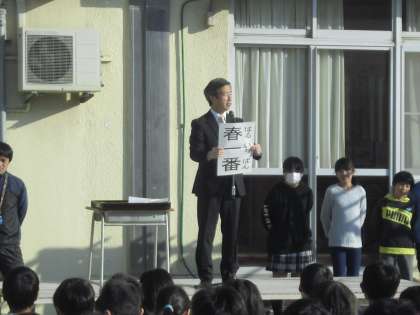 校長先生からは、17日(金)に観測された「春一番」をキーワードに、春の訪れについてのお話をいただきました。