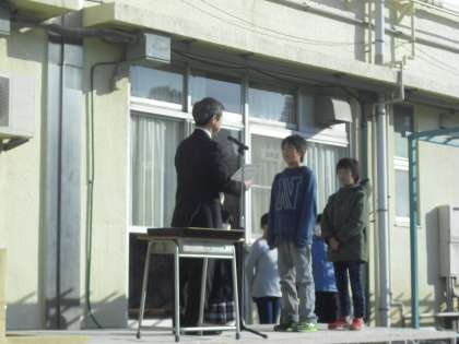 生活面について明官先生から「晴れた日は外で元気に遊ぼう」を生活目標にして、春に移り変わる季節を感じながら過ごそう、というお話がありました。