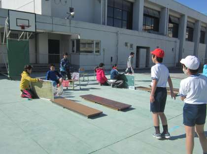 今日はお別れスポーツ大会を5・6校時に行いました。「楽しい思い出を増やしてほしい。」というめあてもって5年生がドッジボールを、つくし学級はストーン・ボーリングを企画しました。みんな真剣に楽しく活動していました。