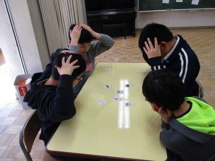 1時間目に英語活動がありました。今日は「文房具」の名前を英語でどう表現するのかを講師の先生に教えていただきました。「鉛筆」「消しゴム」などよく知っている物の名前を英語で言ってみました。3つのチームに分かれて、カルタ取りのようにカードゲームをしながら、楽しく学習しました。