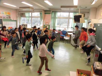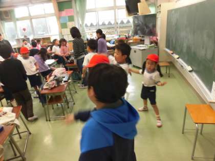 5年生は6年生を送る会に向けて実行委員会を立ち上げました。全校ダンスに取り組むため、中休みに1年生にジンギスカンのおどり方を教えに行きました。