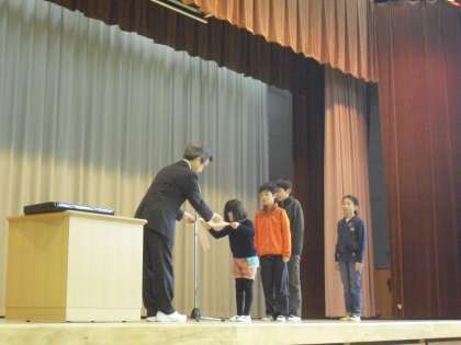 校長先生からは、5年生有志が受講した「平成28年度小学校科学センター」の修了証が授与されました。