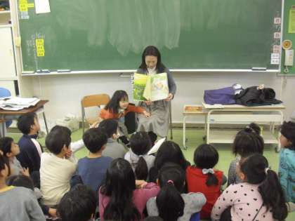 2組では今朝の朝学習の時間に、保護者の方による読み聞かせの会を開いていただきました。日本の絵本とリベリアの絵本を読み聞かせしてもらい、子どもたちは大満足の表情でした。
