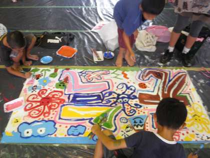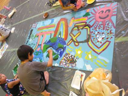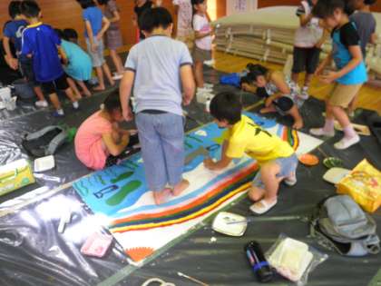 この作品は、乾かしてから、道路側のフェンスに飾ります。