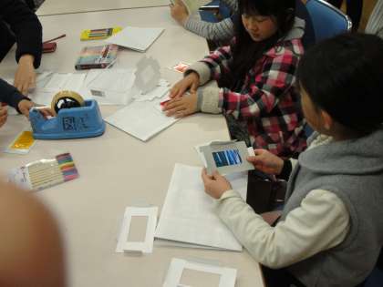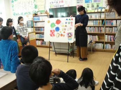 本日、新入学の児童にも声をかけての土曜日、図書館開館を行いました。開始時間の10時になると、保護者の方々やたくさんの子どもたちが図書館に集まってきました。今日のテーマは「色」。楽しいリズムにのってのパネルシアターや色の本の読み聞かせを一生懸命聞いていました。工作イベントでは「色めがね」を作りました。子どもボランティアさんの活躍により、セロファンの付いたオリジナルの色めがねを作ることができ、嬉しそうでした。新学期も、より多くの児童が図書館に来てくれることを期待しています。