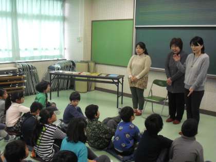 今日の2・3・4校時に、各学級が会議室でおはなし泉の会の皆さんによる「おはなし会」を開いていただきました。