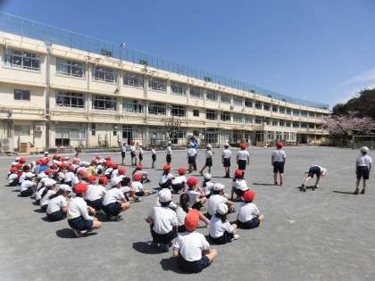 3年生は全学級合同で、80m走のタイムの計測をしました。青木先生の指導のもと、スタートの姿勢や走り方などを練習しました。