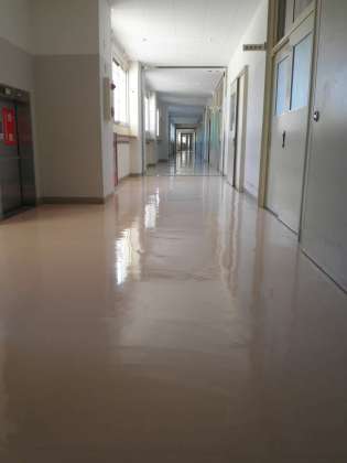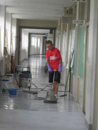 主事さんたちは、この時期に全ての廊下の掃除とワックスがけをしています。