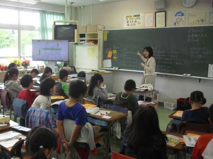 今日の3・4校時、5年生が外国語活動「世界のいろいろな言葉であいさつしよう」に取り組みました。