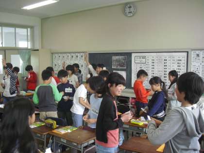 「Nice to meet you.」、「My name is 〜.」などの表現を覚え、友達同士で、はっきりとした発音で話すことができました。