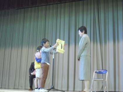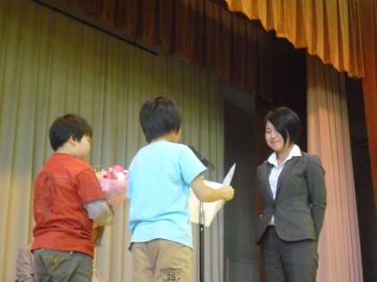 3月で転出された後藤校長先生、田中先生、内野先生が来校し、子どもたちからのメッセージと花束を贈りました。3人の先生方からそれぞれお話をいただき、子どもたちは感謝の気持ちを込めて大きな拍手を送っていました。