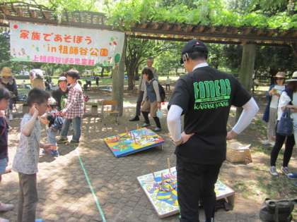 こどもの日、上祖師谷ぱる児童館のイベントで、「家族であそぼうインin祖師谷公園」がありました。烏山小学校からは、ファーザース烏山のお父さん6名、本校の教員2名がお手伝いとして参加しました。こどもの日の一時を、遊びに来た子どもたちと過ごしました。