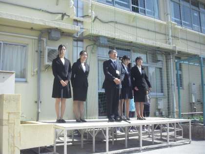 校長先生からは、「人格の完成をめざして」5月のテーマ「思いやり」についてのお話がありました。続いて、明日から週に一度、教育ボランティアとして協力してくださる白百合女子大学の方々からのごあいさつがありました。