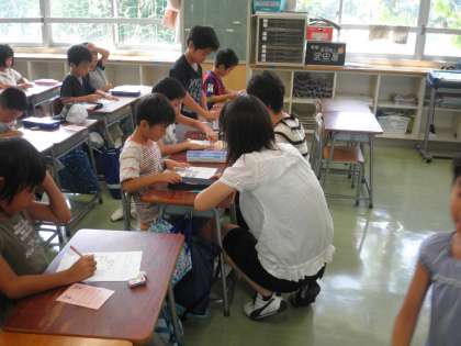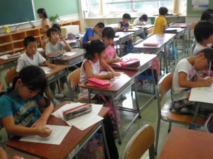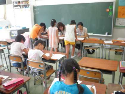 できた子は、先生やボランティアの方がチェックしてくれます。