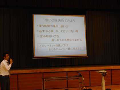 インターネットの仕組みや、インターネットの長所・短所を分かりやすく教えていただきました。インターネットを使う上で大切なこと・知っておかなければならないことは、1.途中に必ず記録が残るということ 2.知らない人が見るかもしれないということ 3.一度公開するとすべては取り消せないということ 4.気持ちが伝わりにくいということ 5.本当かどうか分からないということ だそうです。便利なインターネットを安全に利用できるよう、ご家庭でもぜひ話題にしてみてください。