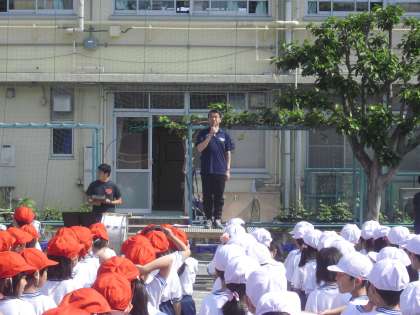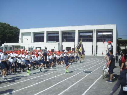 今日の1校時に、校庭で運動会の全校練習を行いました。入場行進やラジオ体操、閉会式の入場についての動きを確認しました。