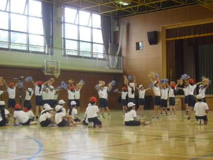4校時には校庭で100m走の入場から退場までのリハーサルをしました。5校時には団体演技の練習に取り組みました。