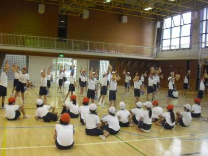 学級ごとにお互いの動きを見合い、アドバイスをして動きをさらによくしようとしていました。