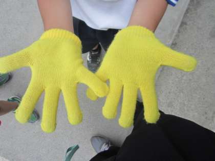 1年生の表現は、「GUTS!]です。楽しく踊っています。かわいらしさがとてもよくでています。3色の軍手も映えます。ご期待ください。