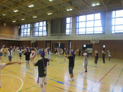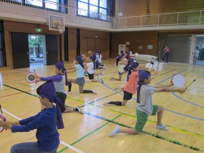 本日、雨天のため体育館にて運動会のリハーサル練習を行いました。