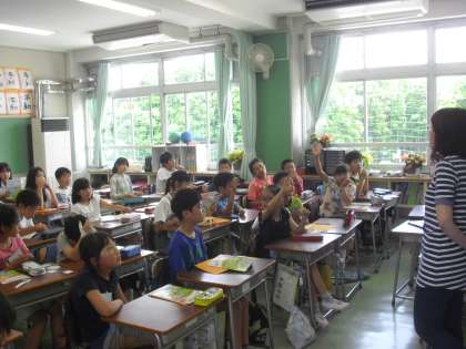 今日は1組が外国語活動をしました。数の英語表現を習い、自分の出席番号をはじめ、1から39までの言い方を身に付けて、はっきりと言うことができました。