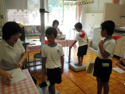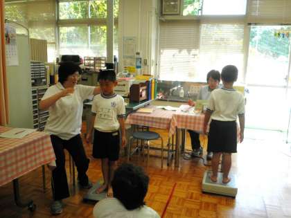 みんな先生の話をしっかり聞いて静かに計測をしています。