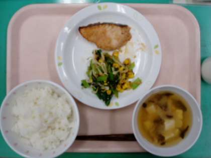 6月になり、もうじき梅雨入りです。さっぱりとした梅肉入りのタレをかけた、さわらの梅肉焼きはやさしい酸味なので食欲も増します。給食室で手作りのだしを使ったみそ汁もできあがりました。