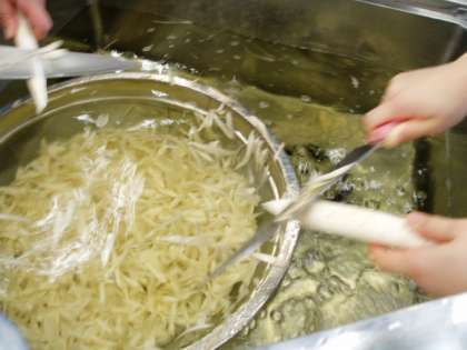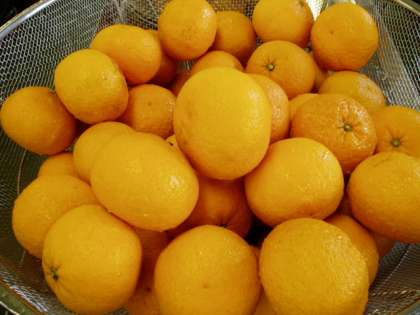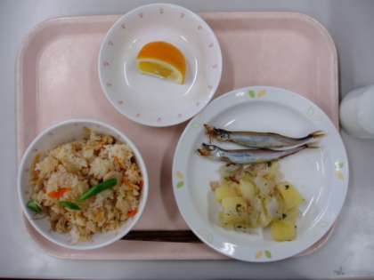 本日の「かみかみ献立」はとりめしです。旬の新ごぼうをささがきに切り具に混ぜています。シャキシャキの歯ごたえがあり、しっかりかむことができます。本日のくだものは酸味は少なく、さっぱりとした甘さの甘夏が100個届きました。