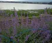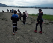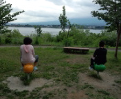 16時15分、大石公園に着きました。ラベンダーの花はまだ早くて咲いていませんでしたが、他の花はきれいに咲いていました。近くに遊具があったので、遊びました。子どもたちは元気です。