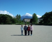 だんだんと天気が回復してきました。15時、宿舎に到着。晴れてきて富士山もきれいに見えるようになりました。富士山をバッグに記念写真。みんなご機嫌です。